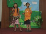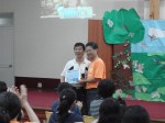 星期五下午做了兩次的排演,安娜便在這週唯一的有空時段裡,帶些人趕工做伊甸園壁報,佈置塲景。到了晚上的成果發表會,來的家長相當多。看到小朋友純熟的用英文讚美神,連唱帶作的六首表演。木偶戲帶出但以理只敬拜獨一真神,寧願餵獅子卻不向偶像妥協的信息帶入節目的高潮。大家都很驚訝該子們是如此可被塑造。載興國小校長及玉田國小教務主任滿懷興奮、喜自內心地致謝詞。載興國小校長欣慰學生的回條講到, 他們喜歡講英語, 會唱英語歌, 還有些說他們聽懂耶穌的故事。他們都詫異學生在短期間不但能學會這麼多的英文詩歌,還做出許多整齊劃一的活潑動作。玉田國小的主任更強調,他們學校老師在一學期都無法教會一首英文歌。五天的愛心付出真是碩果纍纍,超過我們所求所想的。