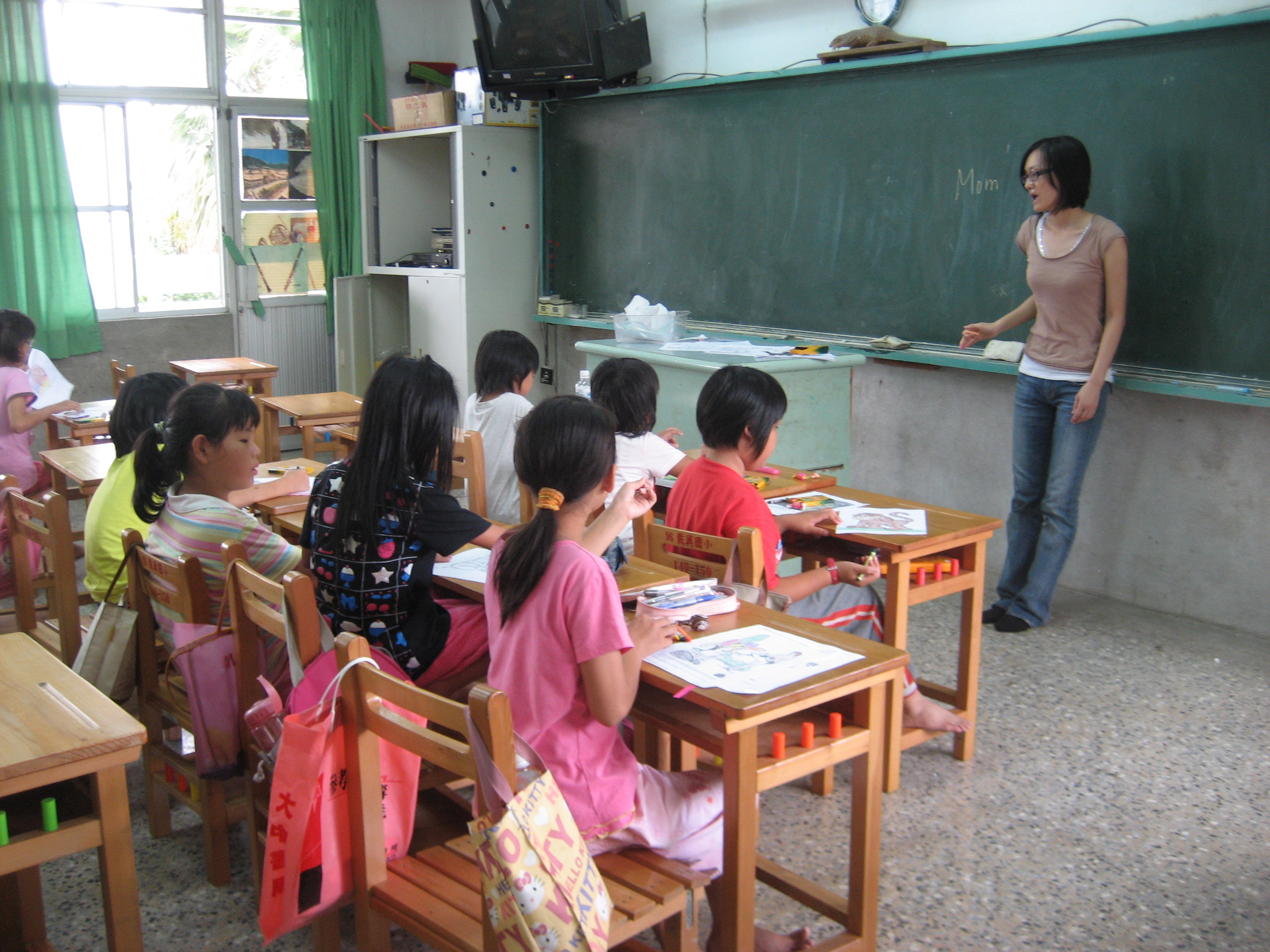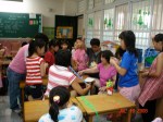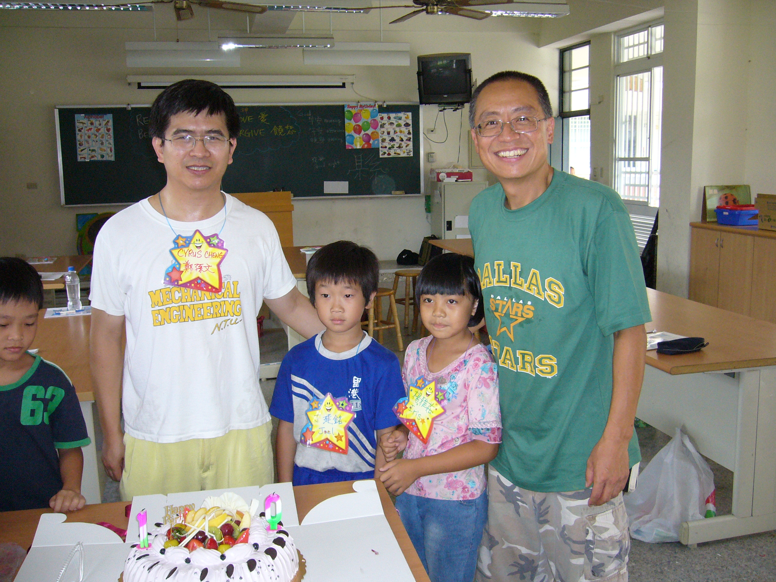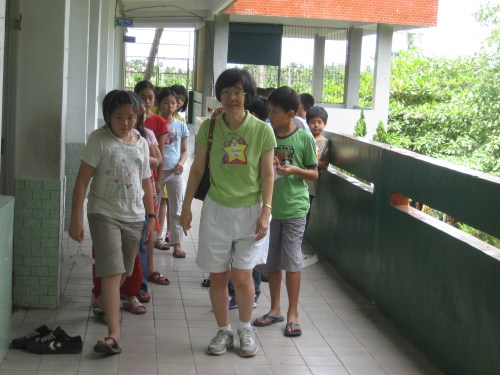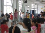 我被編到載興小學教四年級,美霖教一、二年級,燕翎教三年級,重輝教五年級。他們三人已先返臺,雖然從電子郵件略知一些,卻都是在抵達里港後才知道怎麼一回事,但是他們都欣然接受。每天早上我們四人分別教美國村的英文營和聖經教材,在中午孩童休息時才開會商討下午少年樂園的遊戲。感謝神,安排重輝及美霖的臨時配搭,帶出絕妙無比的户外活動,讓孩子們和我都享受到快樂的時光。最辛苦的是李偉珍傳道,她每天兩邊來回帶領敬拜和下午的詩歌教唱。在最後一天的敬拜裡,李偉珍傳道呼召時,竟有約60位載興國小學生舉手願意相信耶穌,近80%。在分班確認後,又有更多的學生要信耶穌,重輝教的較頑皮的高年級班竟全部信主。(另早先在玉田國小時已有80多位學生信主)