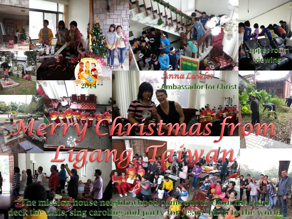 Share the joy of Anna Lawler of Mission Taiwan in shaking the community around the mission house to clean the garden, deck the halls, sing caroling and have party for Jesus’ birth to the world – JOY TO THE WORLD!